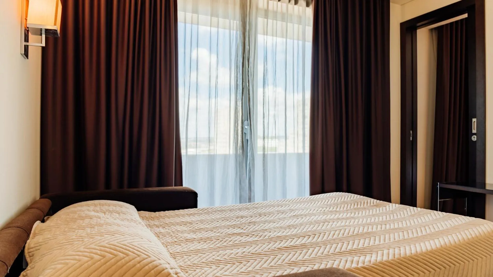Há 145 quartos incluindo suite junior e um quarto twin equipados com cofre pessoal, mesa de trabalho, equipamentos para chá e café. Tem uma vista para a cidade. Vai encontrar toques agradáveis como uma sauna, casa de banho à parte e chuveiro para melhorar a sua estadia.